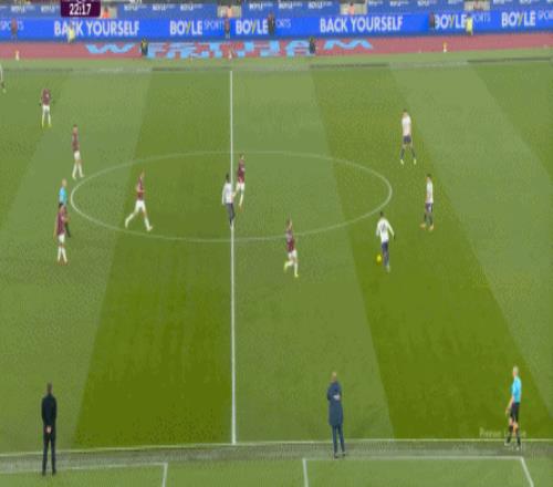 西汉姆联本场比赛的第一次成型进攻,其实就打出了我们想要讨论的问题。