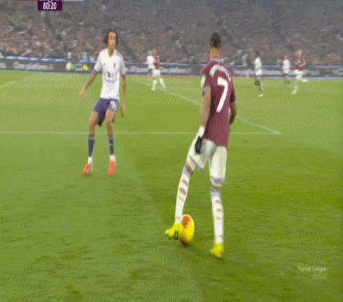 然后,鲍文摆脱了梅努,再次完成了一次横向转移,西汉姆联又把球打到了左侧: