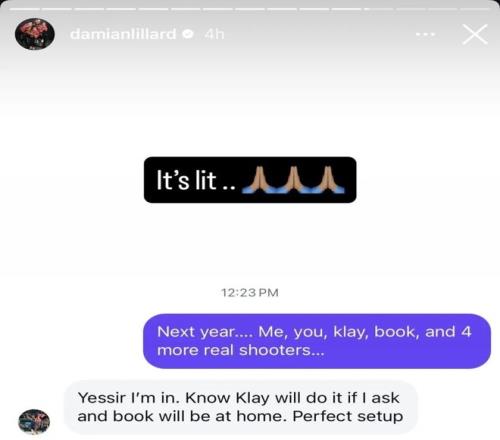 目前这件事已经得到了利拉德确认,利拉德在个人社交媒体上晒出了他与库里的聊天记录,具体如下: