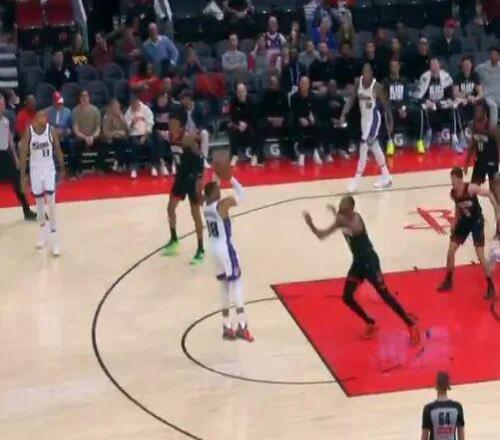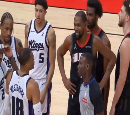 哪怕半场不到主落后20+,威少仍不忘初衷,莽撞地背后一把推搡申京犯规,随后杜兰特上前笑着和威少交流:老伙计,悠着点啊!
