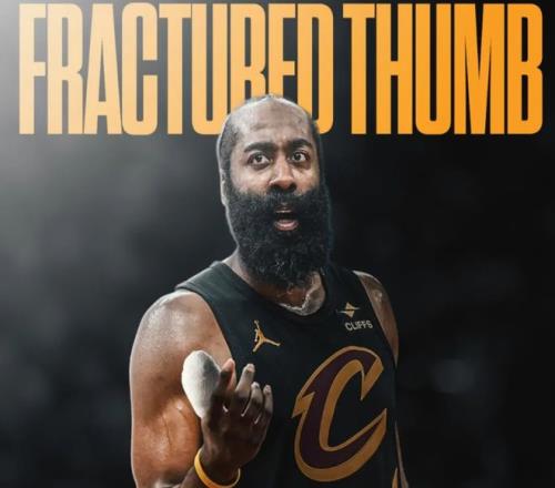 最新爆料,来自于名记Shams:詹姆斯·哈登右手拇指骨折。
