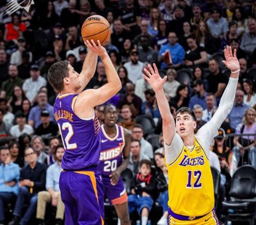 邓恩内外开花,吉莱斯皮续上三分球,太阳很快拉开分差。中段老詹造杀伤+反击上篮,东契奇和肯纳德连续得分帮助湖人反超。此后拉拉维亚造杀伤,东契奇继续单打,节末海斯补篮+肯纳德上篮,第一节湖人27-22领先。进入第二节,阿伦轰进超远三分+点名单吃艾顿,科菲和吉莱斯皮也下起三分雨,老詹在场这段时间,一直输分!中段布耶造三分犯规,杰伦格林压哨强行轰三分球,加上奥尼尔的空位三分,太阳瞬间拉开10分分差。后半段拉拉维亚和里夫斯内外开花,东契奇开始单打,迎着格林就扔三分球。