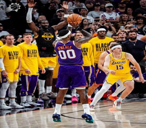 吉莱斯皮轰进远投,东契奇失误,詹姆斯抢断奥尼尔,但随后上篮不中,拉拉维亚完成补篮。里夫斯犯规,奥尼尔2罚全中,拉拉维亚罚进2球,阿伦空位远投不进,里夫斯轰进3分球,湖人追平比分。阿伦外线打铁,奥尼尔补篮得分,斯马特上空篮不中,詹姆斯强势补篮得手。比赛仅剩22.7秒,菲尼克斯请求暂停。奥尼尔命中三分球,时间仅剩0.9秒,雷迪克请求暂停。里夫斯压哨远投不进,最终,太阳以113比110绝杀湖人,完成了13分逆转好戏。