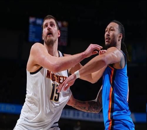 第三节,掘金调整了状态,球队仅落后3分进入到末节。尽管掘金在最后两分钟一度落后9分,但是他们没有放弃,连续命中三分球,在最后40秒,掘金落后雷霆3分,随着约基奇转身抛投打进,掘金仅落后雷霆1分。