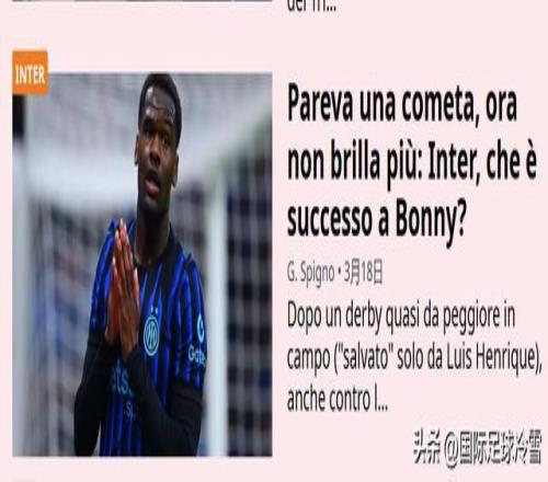 另一方面,以《米兰体育报》为首的意媒,正在批评博尼,就像是几个月前抹黑恩里克,几周前抹黑巴斯托尼一样,这家媒体的记者,最喜欢干的两件事,其一是批评国米球员,其二是炮制国米核心低价被甩卖的传闻。