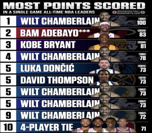 这也是为什么,阿德巴约这场球在网上会被很多人贴上“刷分”的标签。因为从比赛观感看,前面三节是火力全开,后面一节已经明显变成全队围着纪录打。尤其是当阿德巴约同时把“历史单场第二高分”和“历史单场罚球出手第一”放进同一场比赛里时,外界自然会追问一句:这场83分到底有多大分量,和大家印象里的那些传奇高分夜是不是一回事。