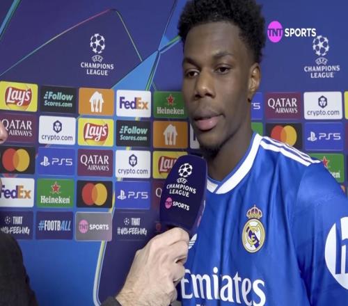 欧冠淘汰赛附加赛首回合,皇马客场1-0战胜本菲卡,皇马中场楚阿梅尼赛后接受了TNT体育墨西哥频道的采访。感谢你...