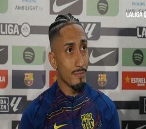 用帽子戏法帮助球队在联赛主场5-2大胜塞维利亚后,巴萨前锋拉菲尼亚当选全场最佳,赛后他接受了DAZN的采访。球...