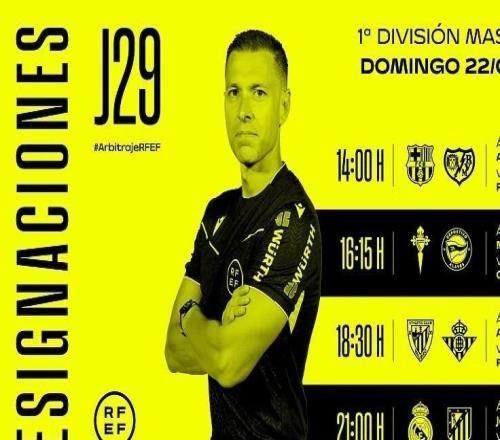 官方消息,何塞-穆努埃拉将执法西甲第29轮皇马vs马竞的马德里德比。周日西甲裁判安排:巴塞罗那vs巴列卡诺 主裁...
